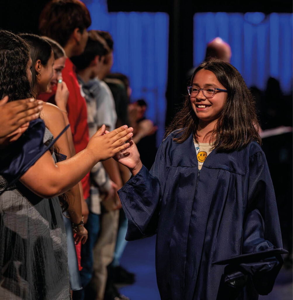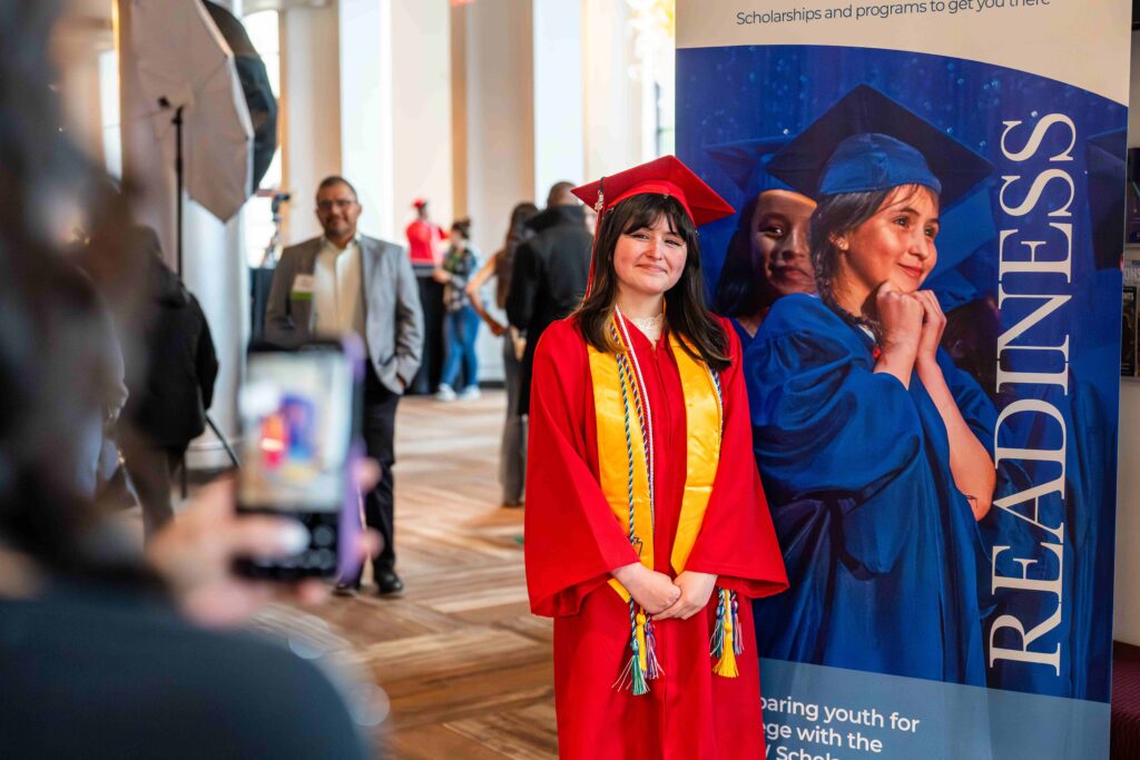 The organization awarded more than $467,000 in scholarships to high school seniors and current college students this year, with a particular focus on welcoming the latest group of middle school students to join our college preparedness program for first-generation youth. Dressed in oversized graduation gowns, these young scholars crossed the stage to receive caps from our outgoing college readiness seniors – a touching ‘passing the torch’ moment that symbolizes the bright future ahead.